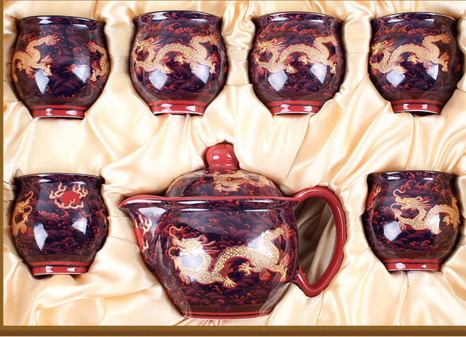 | 產(chǎn)品名稱:紅釉藍(lán)海龍一壺六杯組 |