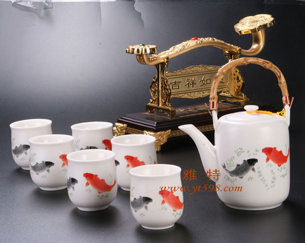 | 產(chǎn)品名稱:年年有余玉脂瓷燈籠壺六杯組 |