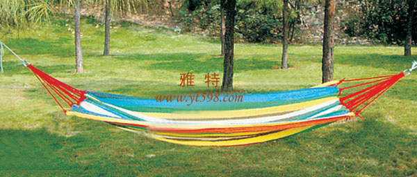 | 產(chǎn)品名稱:彩條帆布無棒吊床1.5米 |