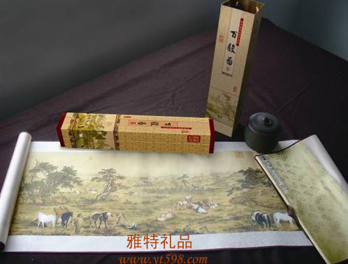 當(dāng)前位置:雅特禮品>>工藝精品>>樹脂>>《百駿圖》真絲卷軸畫