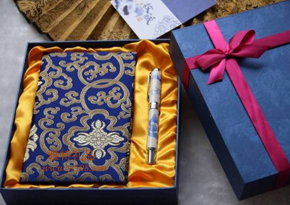 | 產(chǎn)品名稱:青花瓷銀色鏤花筆絲綢筆記本二件套 |
