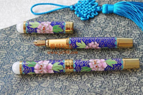 材質(zhì):景泰藍(lán)+青玉及純銅配件; 規(guī)格:筆長180MM 直徑18MM(鋼筆); 包裝:木盒+手袋;30支/箱; 30支起在盒上免費印字,100支起在筆身上做字. 景泰藍(lán),歷史上稱為琺瑯器,工藝上稱為“銅胎掐絲琺瑯”,是一種瓷銅結(jié)合的琺瑯工藝品。 景泰藍(lán)的制作工藝,既運用了青銅和燒瓷的傳統(tǒng)技術(shù),又吸收了傳統(tǒng)繪畫和雕刻的技法,堪稱中國傳統(tǒng)工藝的集大成者。 制作而成的工藝品具有渾厚凝重,富麗典雅的藝術(shù)特色。 在明朝的景泰年間(1450-1457),這項工藝已經(jīng)十分成熟,尤其是藍(lán)釉料有了新的突破,像藍(lán)寶石般濃郁的寶藍(lán),高貴華美, 所以,被稱為“景泰藍(lán)”。到現(xiàn)代,雖然景泰藍(lán)的工藝品已是各種色彩具備,但仍然沿用著“ 景泰藍(lán)”的習(xí)慣稱謂。 具有500多年歷史的景泰藍(lán)作為一種美術(shù)工藝品,其制法既于銅器表面上以各色琺瑯質(zhì)涂成花紋,花紋的四周嵌以銅絲或金銀色,再用高火度燒既成。 現(xiàn)在的景泰藍(lán)工藝大有提高,造型多樣。紋飾品種繁多,已經(jīng)被大從所熟知,并以其精彩絕倫的設(shè)計及其富麗堂皇的色彩,在國內(nèi)外贏得了極高的盛譽(yù)。 作為著名的宮廷藝術(shù)傳統(tǒng)手工藝品,景泰藍(lán)有很多的傳統(tǒng)產(chǎn)品,目前還開發(fā)出了品種眾多的新產(chǎn)品。我公司將傳統(tǒng)景泰藍(lán)與玉石的完美有機(jī)結(jié)合起來,賦予景泰藍(lán)一個全新的詮釋。 景泰藍(lán)已成為我們與國際友人和親朋好友互相往來的最佳禮品了。