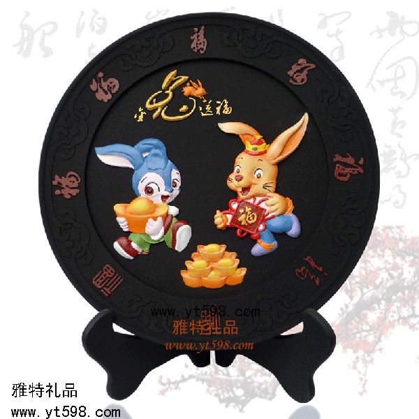 | 產(chǎn)品名稱(chēng):金兔送福圓盤(pán)炭雕 |