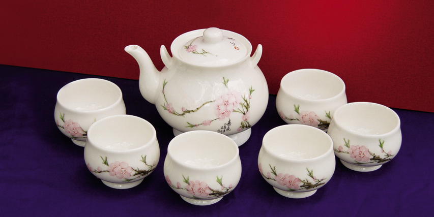 | 產(chǎn)品名稱:水點桃花茶具七件套 |