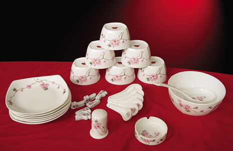 | 產(chǎn)品名稱:水點(diǎn)桃花餐具二十八件套 |
