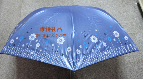 | 產(chǎn)品名稱:三折黑滌彩膠天堂傘 |