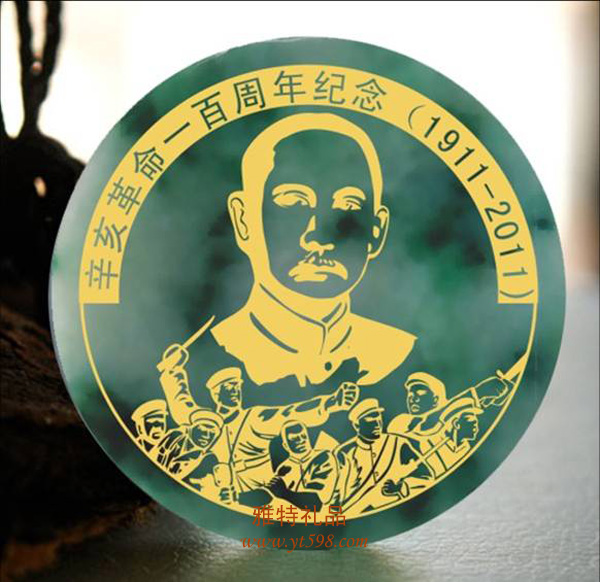 | 產(chǎn)品名稱:紀(jì)念辛亥革命一百周年紀(jì)念翡翠玉章(鑲金) |