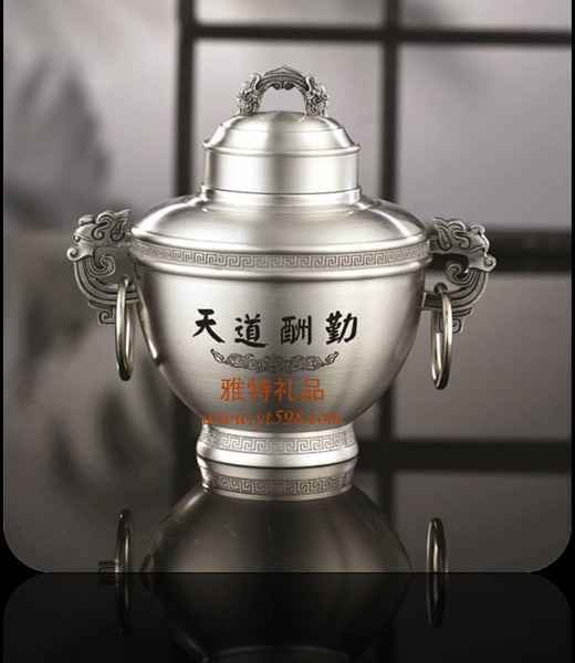 | 產(chǎn)品名稱(chēng):天道酬勤純錫茶葉罐 |