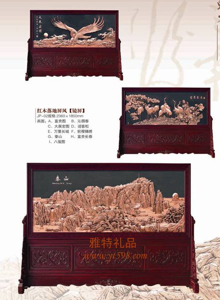 | 產(chǎn)品名稱:紅花梨木紫銅浮雕落地柜屏 |