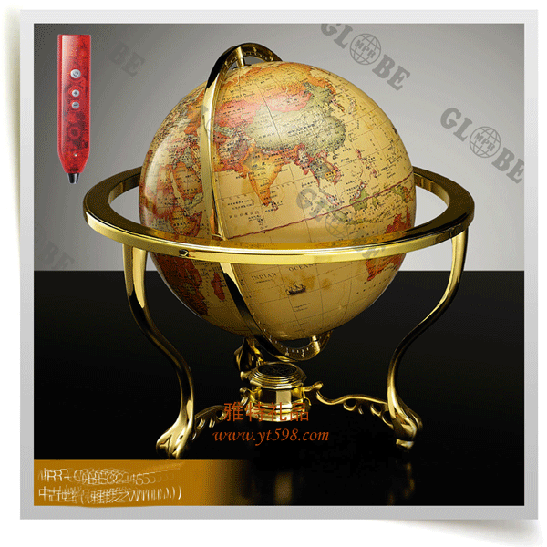 | 產(chǎn)品名稱:鋁合金鍍金矮架發(fā)音地球儀 |