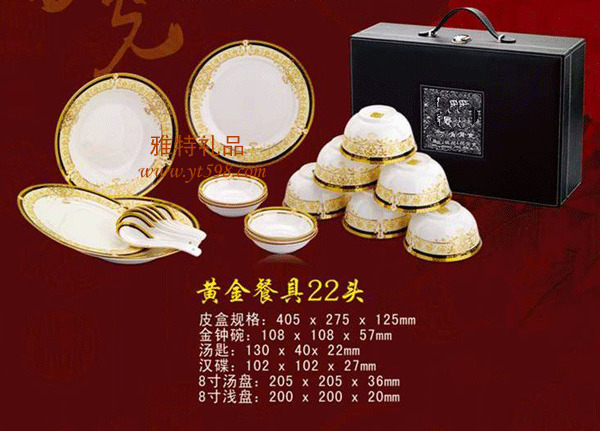 | 產(chǎn)品名稱:高級(jí)骨瓷黃金餐具22件套 |