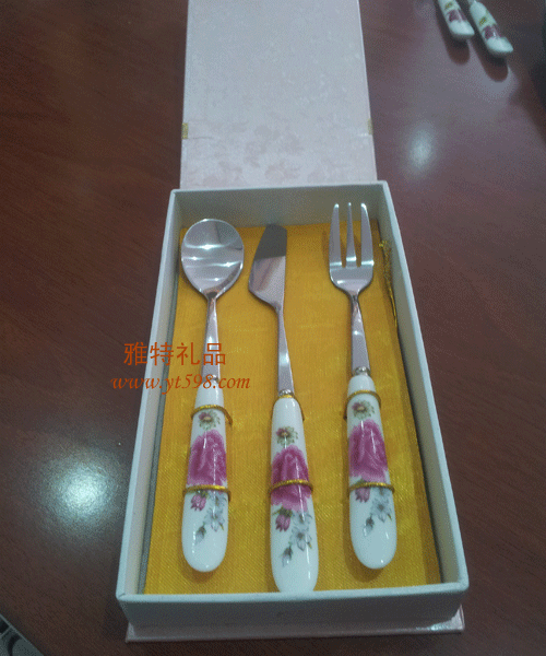 | 產(chǎn)品名稱:不銹鋼陶瓷手柄餐具三件套 |