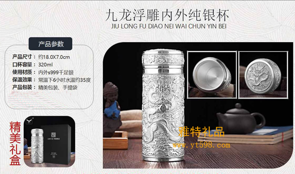 | 產(chǎn)品名稱:九龍浮雕內(nèi)外純銀杯 |