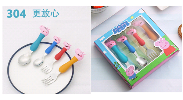 | 產(chǎn)品名稱:304不銹鋼小豬佩奇餐具四件套 |