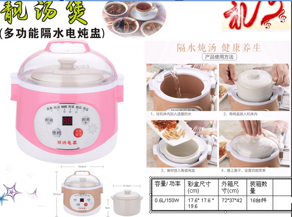 | 產(chǎn)品名稱:0.6L隔水電燉盅 |